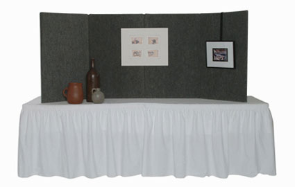 This four section display measures only 2′ W X 3′ H per panel and comes with its own carrying case. It has a clean professional appearance and best of all, a price you can afford.